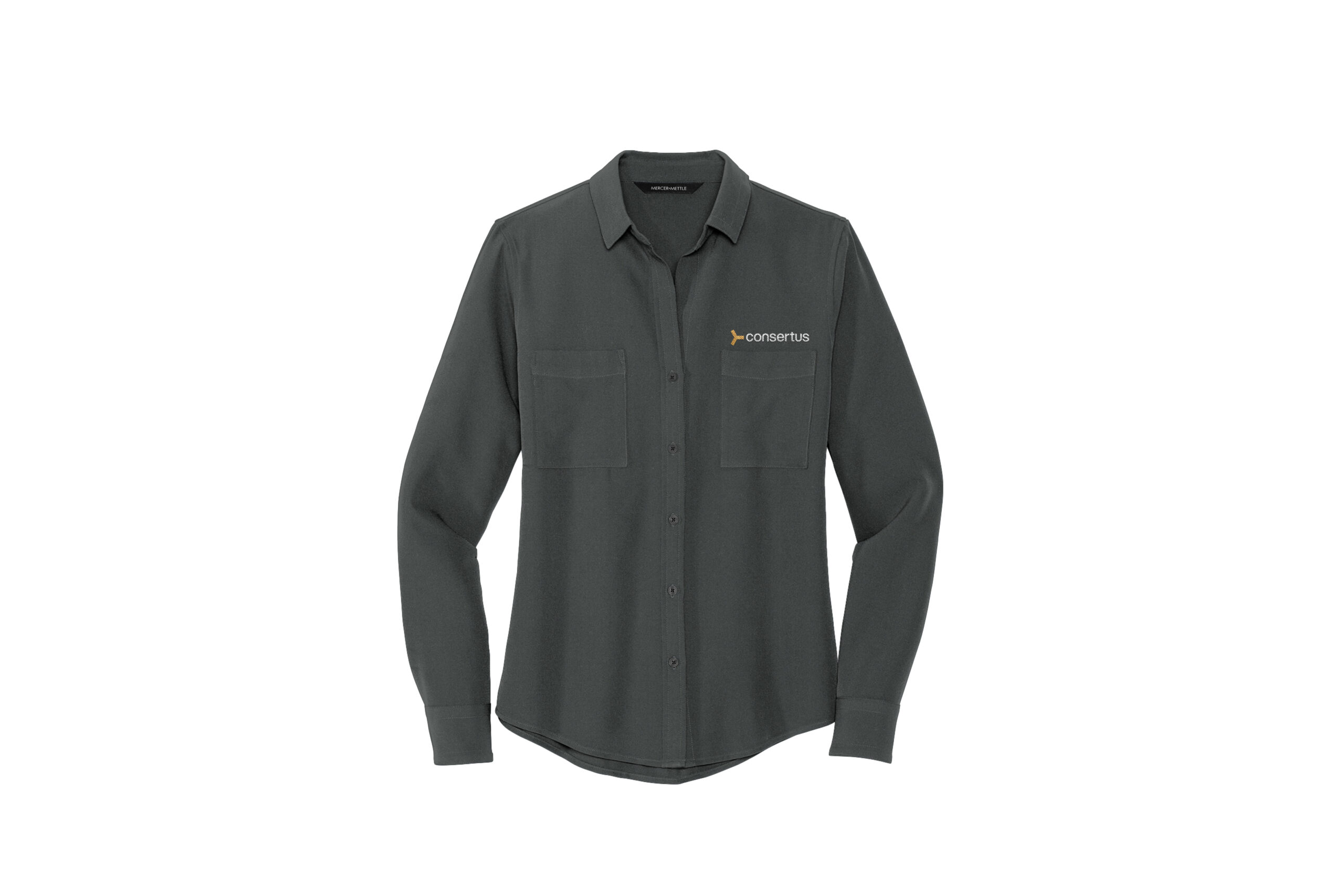 Taking a more refined approach to tailoring, this chic blouse offers movement and ease in a fine crepe fabric and soft fit. Adjustable button cuffs and a trend-right dropped hem add style and versatility for day-to-night wear.