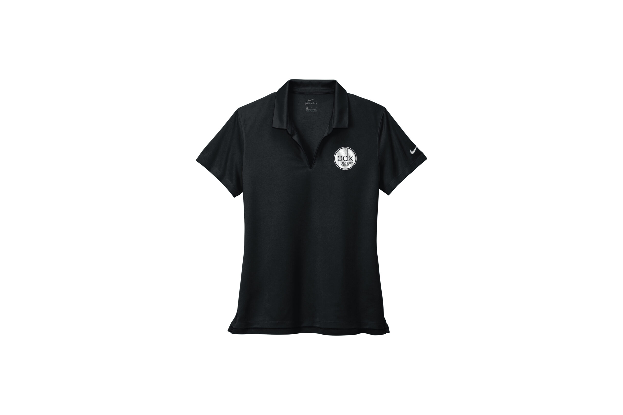 Women stay cool when things heat up. Nike has engineered this modern classic polo with Dri-FIT fabric which provides moisture management technology. This comfortable micro pique polo has an exceptionally soft hand. The design features a flat knit collar with open-hem sleeves. The contrast Swoosh design trademark is embroidered on the left sleeve, PDX Property Group logo is on the left chest. Made of 4.4-ounce, 100% polyester.